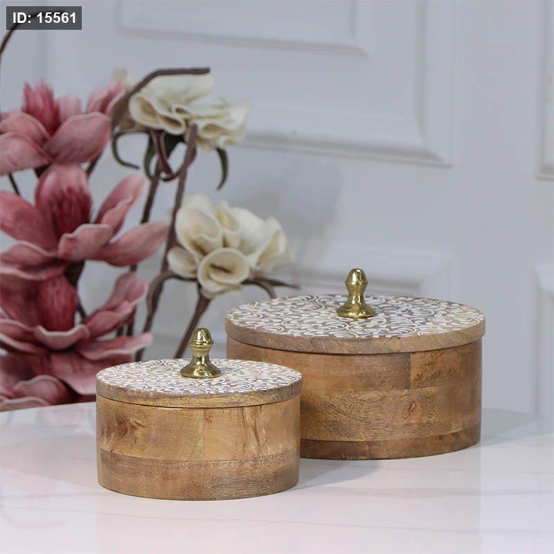 طقم مضايف/2 خشب مدور 20+15سم 89717LS غطا محفر مزخرف ابيض هندي %ه15