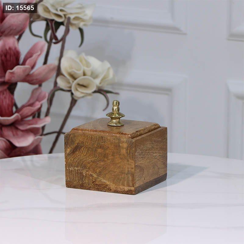 مضيفة خشب مربع 12سم 89728 غطا مسكة نحاس هندي %ه15