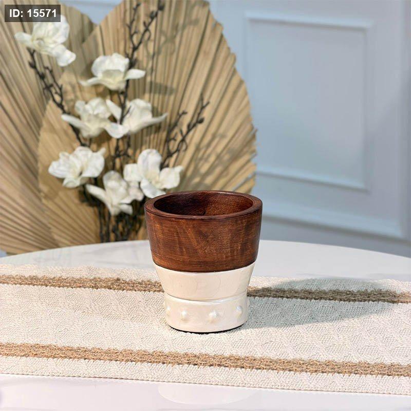 صحن خشب جور مدور 11سم قاعدة مصدف ابيض W ببلز 89849 هندي %ه15