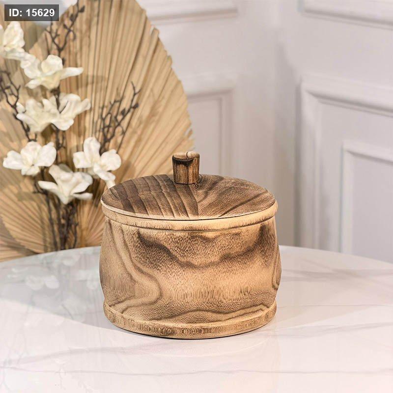 مضيفة خشب مدور 19 سم موشح بني مع غطا A33/18 =و1