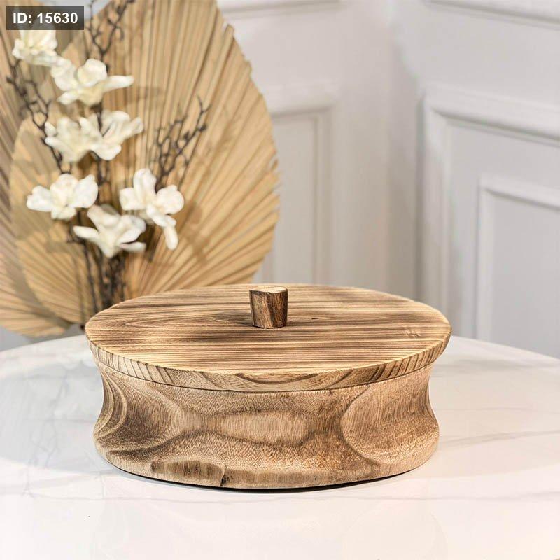 مضيفة خشب مدور 28 سم موشح بني مع غطا A33/19 =و1