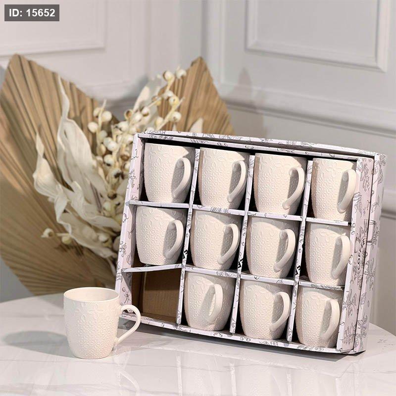 طقم ماغ /12 بورسلان ابيض مبزر محفر ورد A301/9=و1