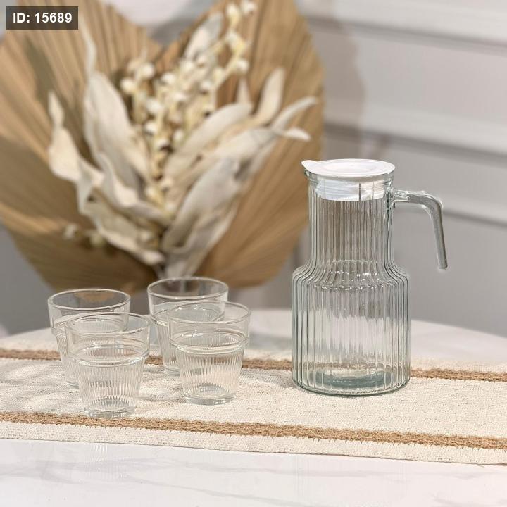 طقم/5 كوز 1.1 لتر غطا بلاستك +4كاسات زجاج محزز ZT-633 ++ت