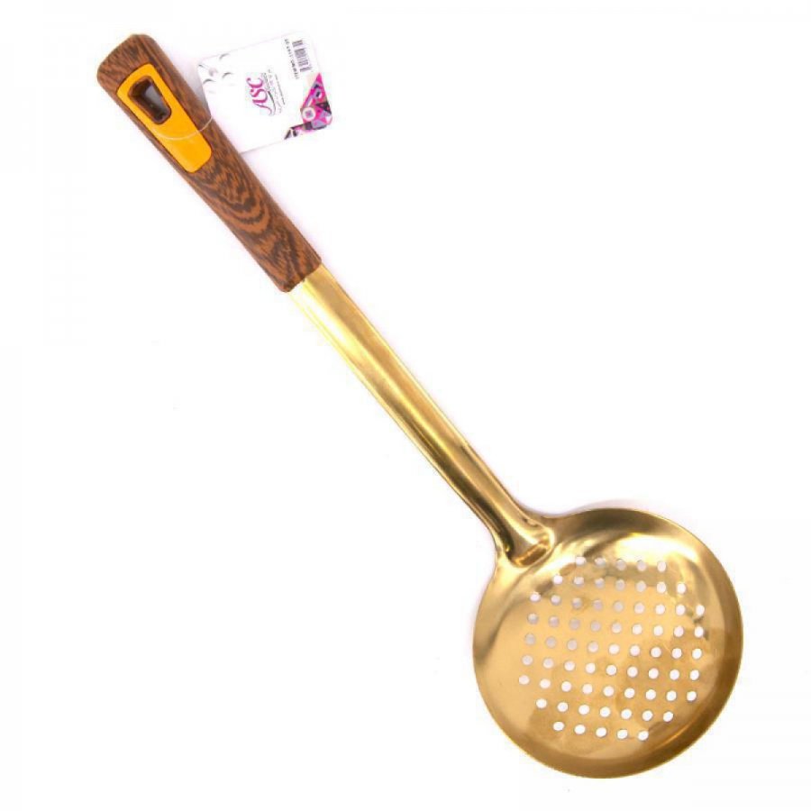 كبشة طعام ستانلس ستيل ذهبي يد بلاستك خشبي 1197/05 *ط*