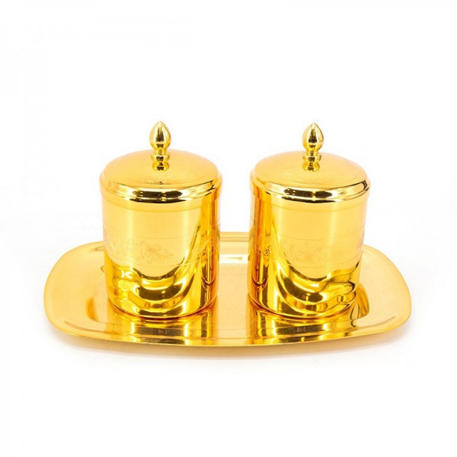 طقم سكاكر عدد 2 ستانلس ذهبي مع صينية GB-135 ++