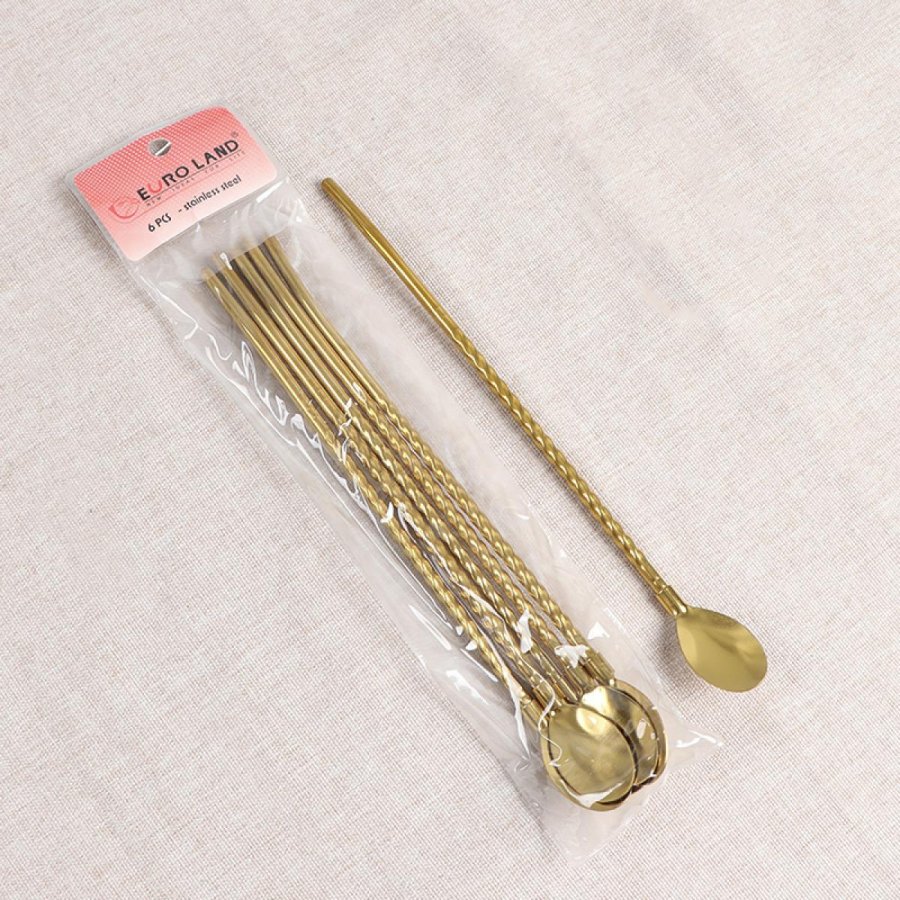 طقم عدد 6 معالق + مصاص متة ذهبي لميع AC210/14 =ح.ق4