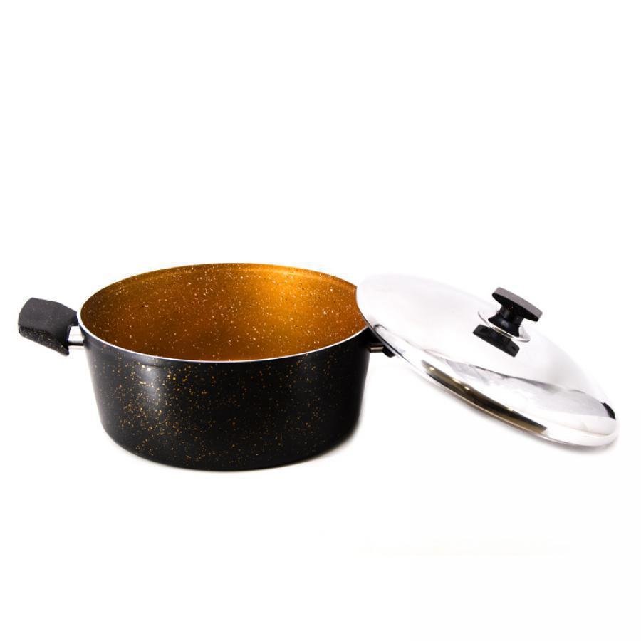 طنجره 20سم جرانيت اسود غطا ستانلس QUANTUM تركي +خ