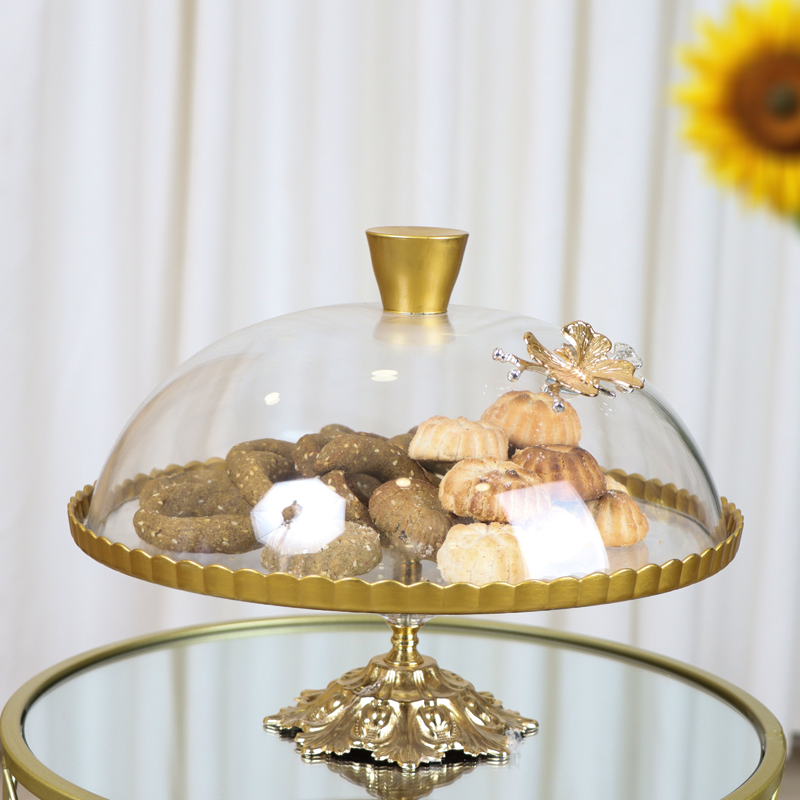 جاط كيك 32 سم زجاج سادة اطار ذهبي معرج غطا فانوس 95198 تركي 37/4 +ط4