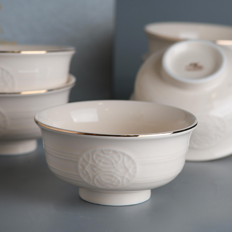 طقم زبادي عدد 6 بورسلان بيج دوائر مشبك حز ذهبي 6BOW-JP1 ++ر1