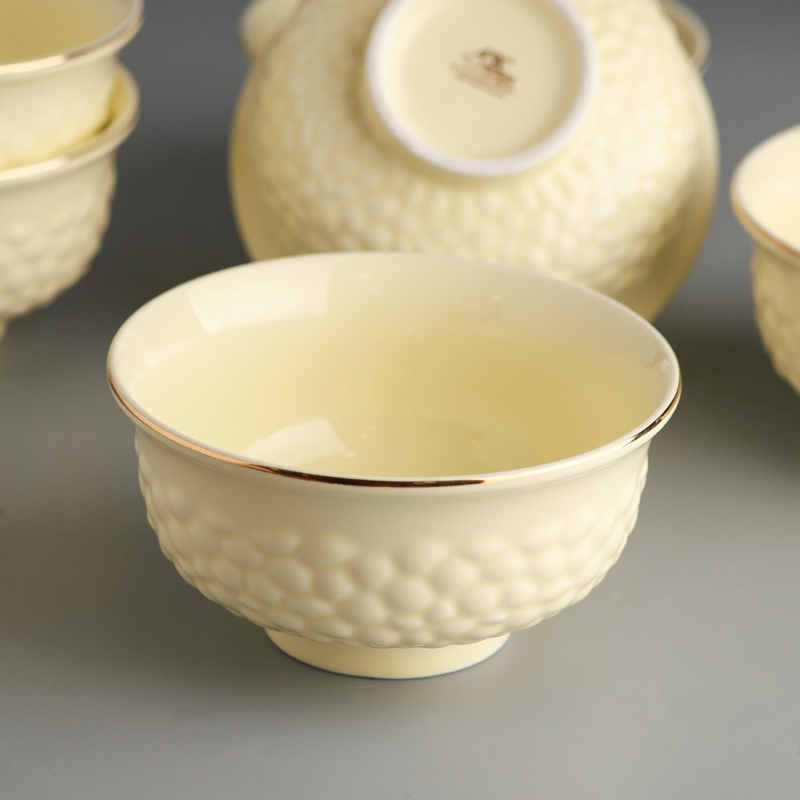 طقم زبادي عدد 6 بورسلان كريمي مبزر حز ذهبي 6BOW-PP2 ++ر1