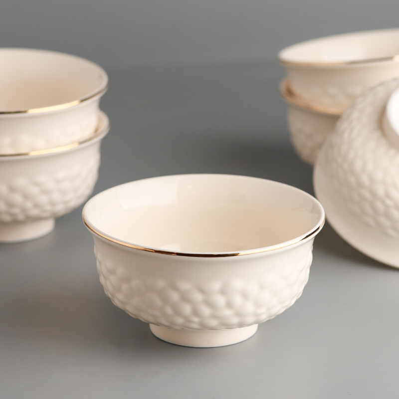 طقم زبادي عدد 6 بورسلان بيج مبزر حز ذهبي 6BOW-PP1 ++ر1