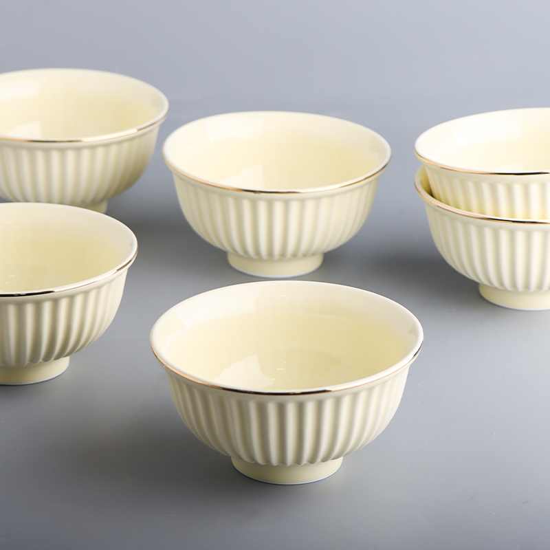 طقم زبادي عدد 6 بورسلان كريمي محزز مشبك حز ذهبي 6BOW-TWW2 ++ر1