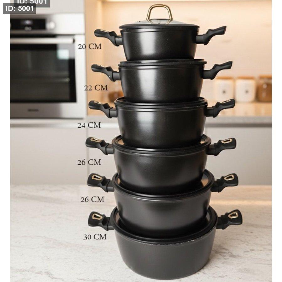 طقم طناجر 20/30 سكب ماط اسود بيدين سيلكون غطا زجاج اطار جلدة +رط5