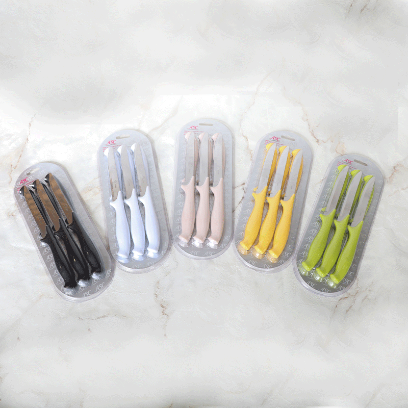 طقم سكينة فواكة /6 نصلة رفيع فضي يد بلاستك ملون HT1P223-1 ++س