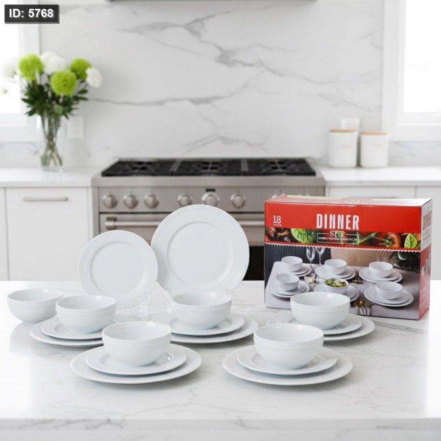طقم صحون سفرة 18 قطعة بورسلان ابيض مدور اطار مبزر ZD3947-18 ++لو