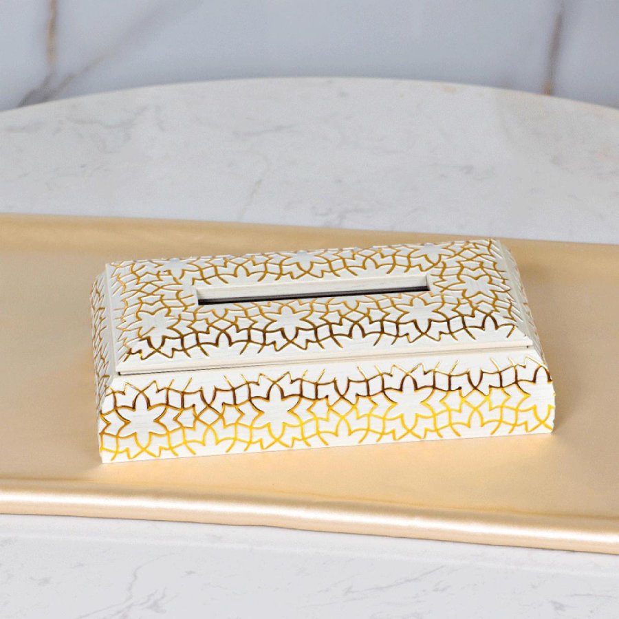 بكيت محارم خشب ابيض مشبك وردة ذهبي AD36/8 =س24.2