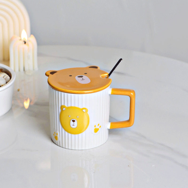 ماغ بورسلان محزز غطا دب ملون مع معلقة AC591/6 =ق4