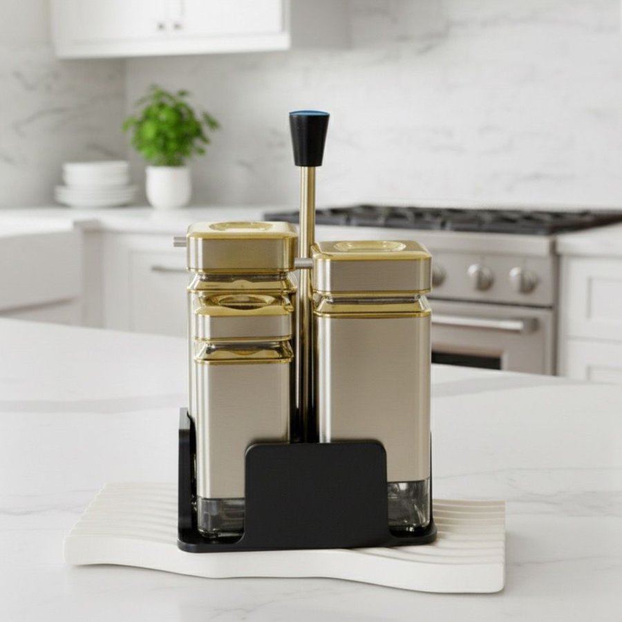طقم 4 قطع مستطيل 2 مزيتة + 2 مملحة زجاج خصر سلفر مع حمالة SM8/4 =ق3