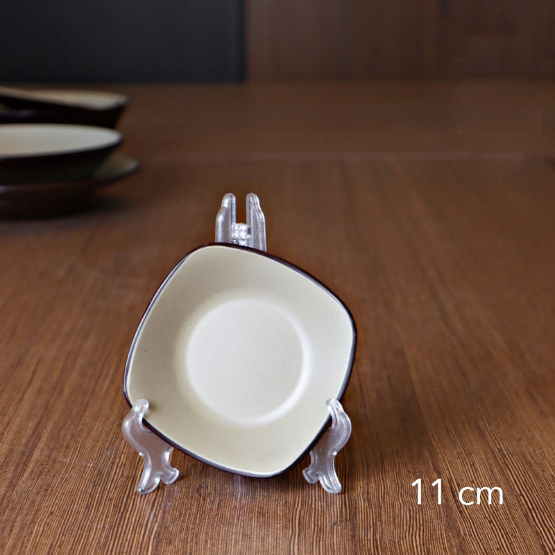 صحن مربع 11سم ميلامين بني محزز اطار معرج AC522/14 =ق5