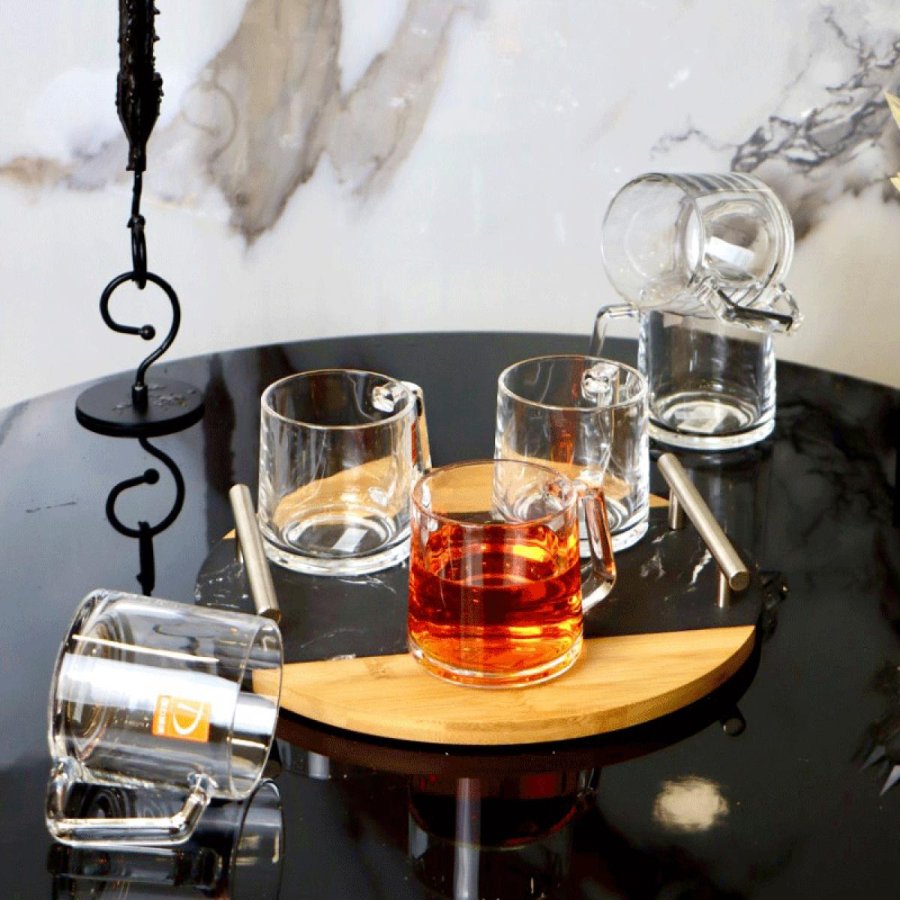 طقم ماغ نسكافية /6 زجاج سادة 350مل حيف ذهبي SM130/3 =ق3