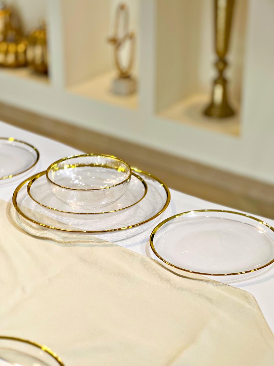 طقم صحون /24 زجاج مورانو سادة اطار ذهبي KX42820-24 ++ج3