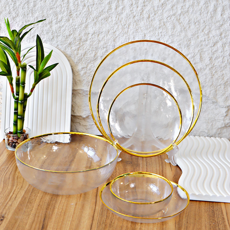طقم صحون /26 زجاج مورانو سادة اطار ذهبي KX42820-26 ++ج3
