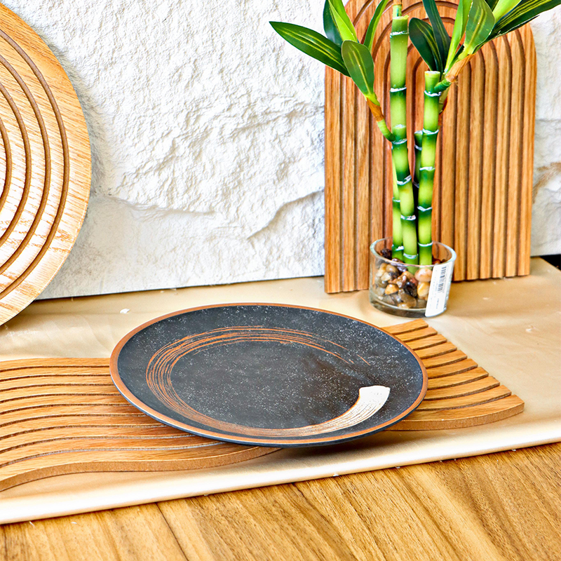 صحن 9" 22سم مدور ميلامين اسود موشح بني AC219/9 =ل2