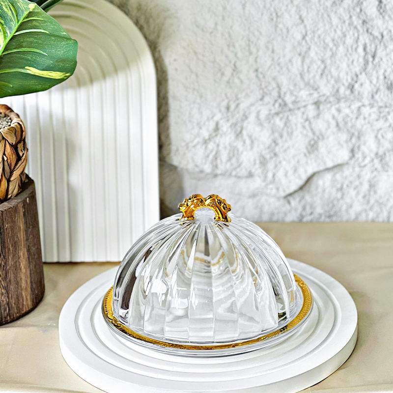 جاط كيك مدور 20 سم زجاج مضلع غطاء قبه حيف ذهبيTB-1029GTW ++ن.ت