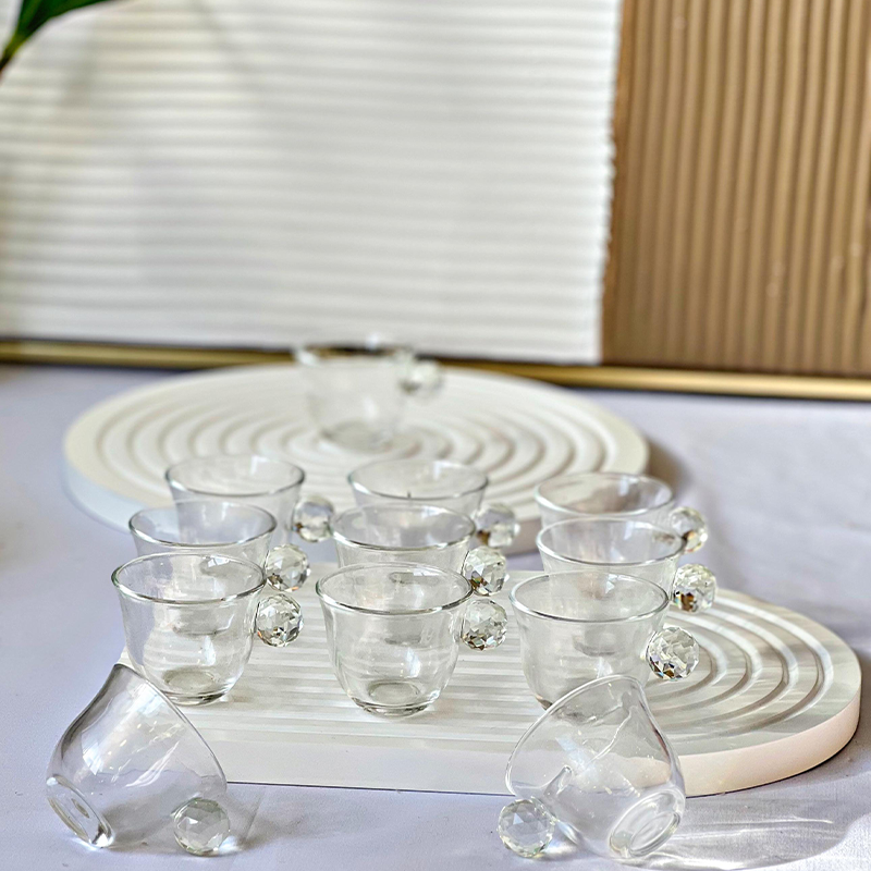 طقم فناجين قهوة/12 زجاج سادة يد جوهرة شفاف 609936 ++ج4
