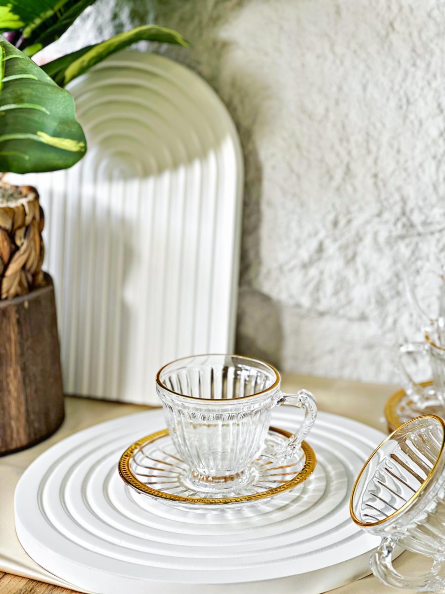 طقم 6/6 كاسة شاي 190 مل زجاج ساده محزز حيف ذهبي ZP27004GTW++ن.ت