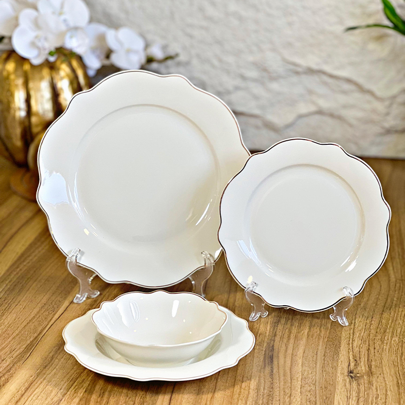 طقم صحون سفرة بورسلان /24 ابيض مشرف حيف ذهبي TRBC22068 ++ب
