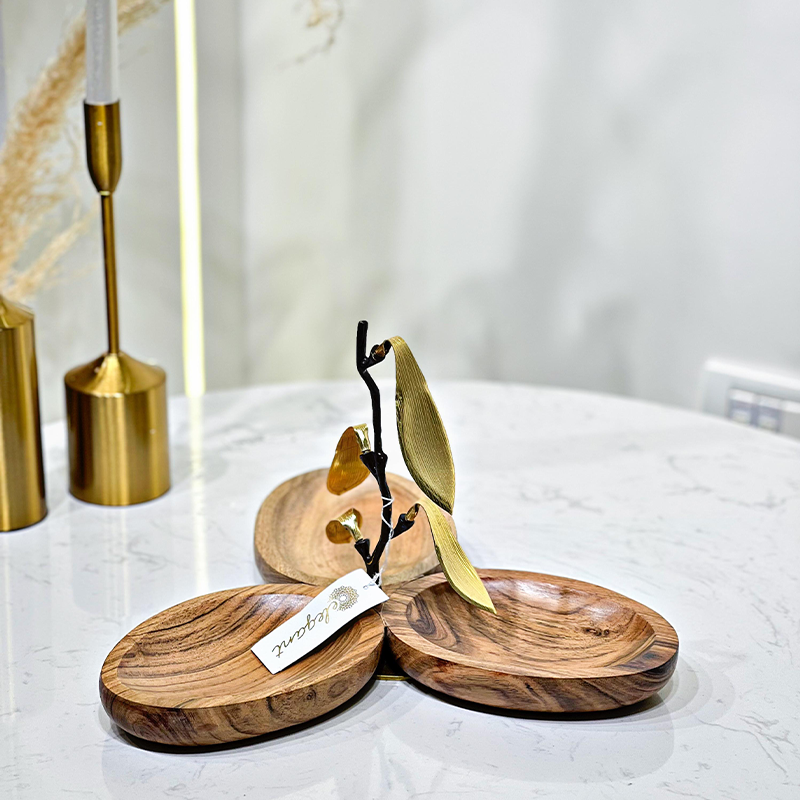 مضيفة خشب 3 عين بيضاوي مسكة مشجر ورق ذهبي 8239373 ؟ه1
