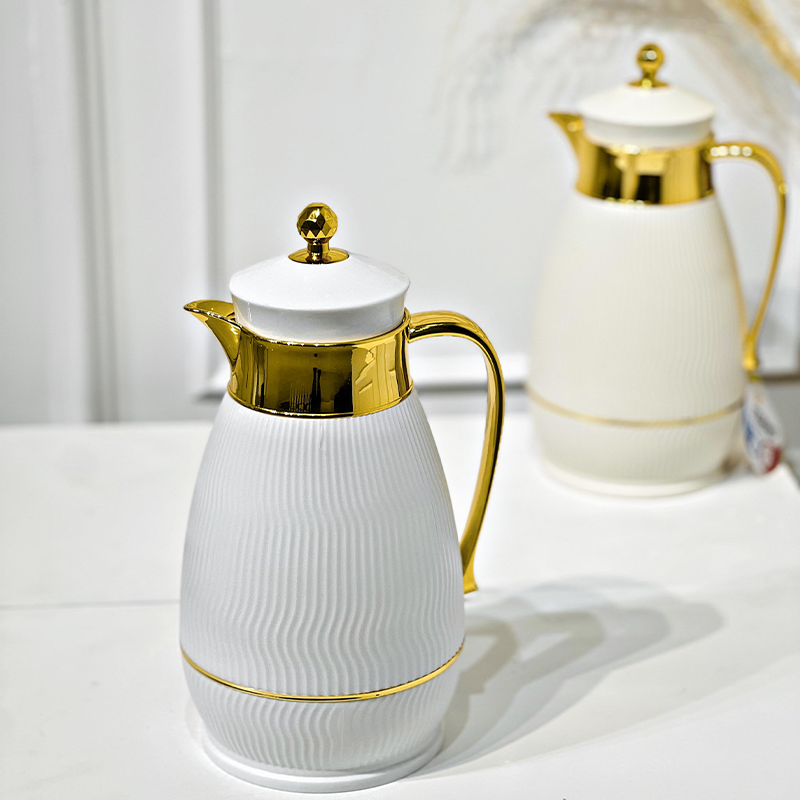 تيرموس بلاستك 1 لتر ابيض محزز معرج يد و غطا جوهرة ذهبي SK-275P +ط5