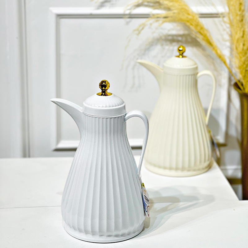 تيرموس بلاستك 1 لتر ابيض محزز غطا جوهرة SK-310P +ط5