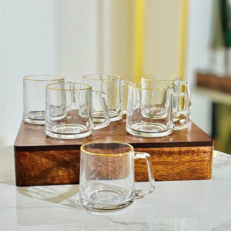 طقم كاسات شاي /12 زجاج سادة حلقات يد حلقة TC6001-GOLD+