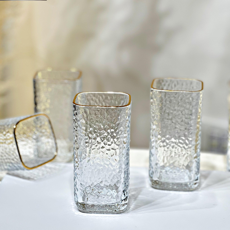طقم كاسة شراب طويل /12 زجاج سادة مربع مبزر حز ذهبي KX78208-B ++