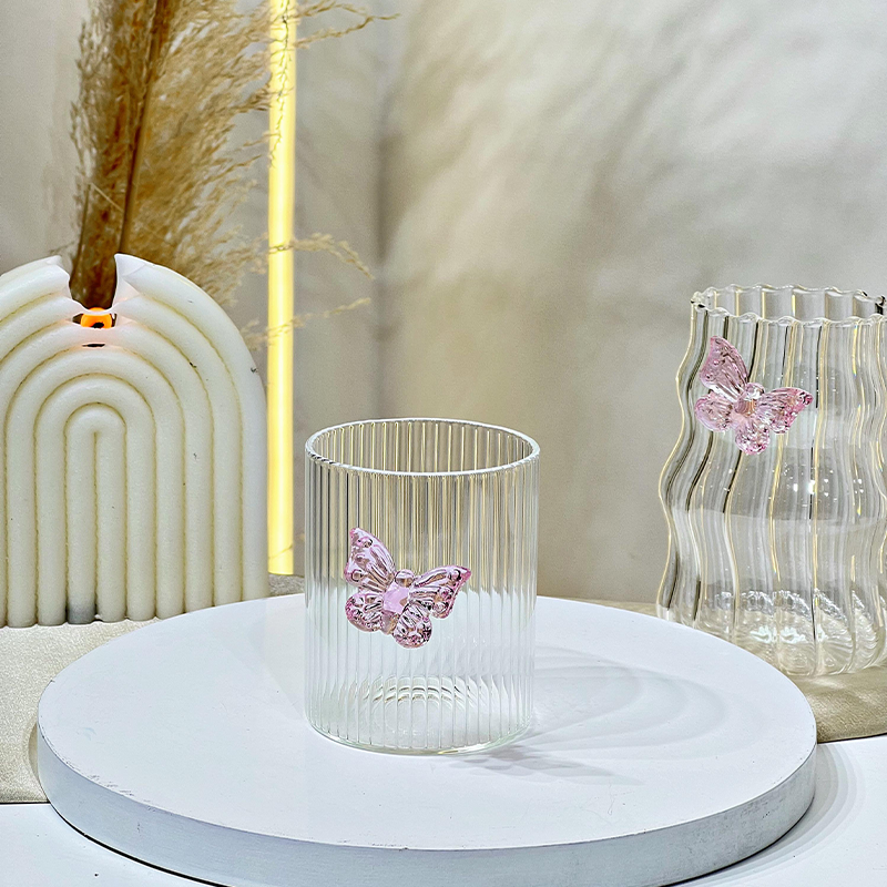 كاسة ماغ مدور زجاج محزز فراشة M++ KX87111
