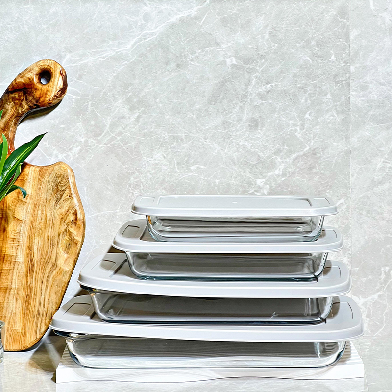 طقم/4 بايركس مستطيل(26/30/34/39سم) زجاج حراري غطا بلاستك KX83101 ++ح