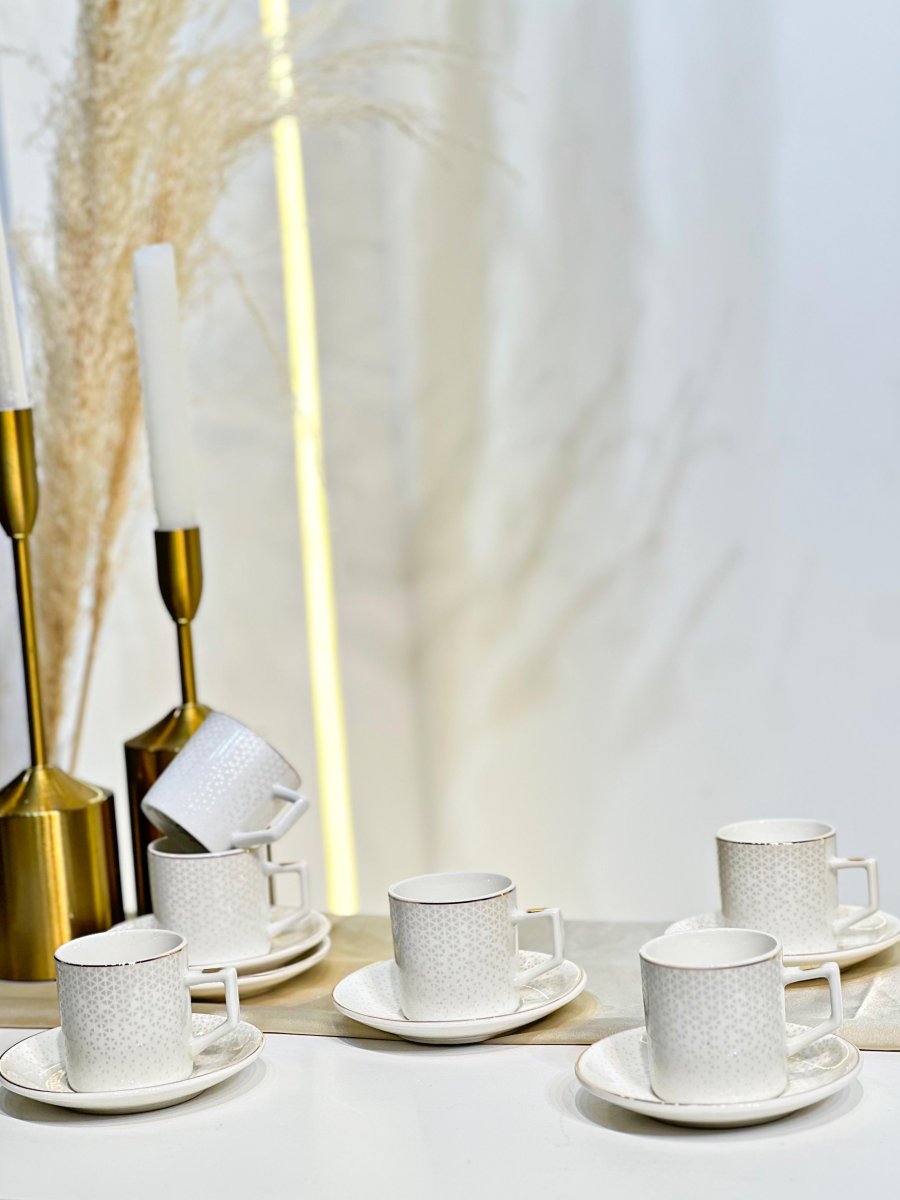 طقم فناجين قهوة 12/12 بورسلان اسطواني ابيض مرسم مثلثات صغير M++ A375-3