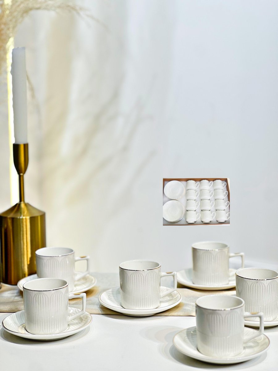 طقم فناجين قهوة 12/12 بورسلان اسطواني ابيض محزز منقط M++ A375-5