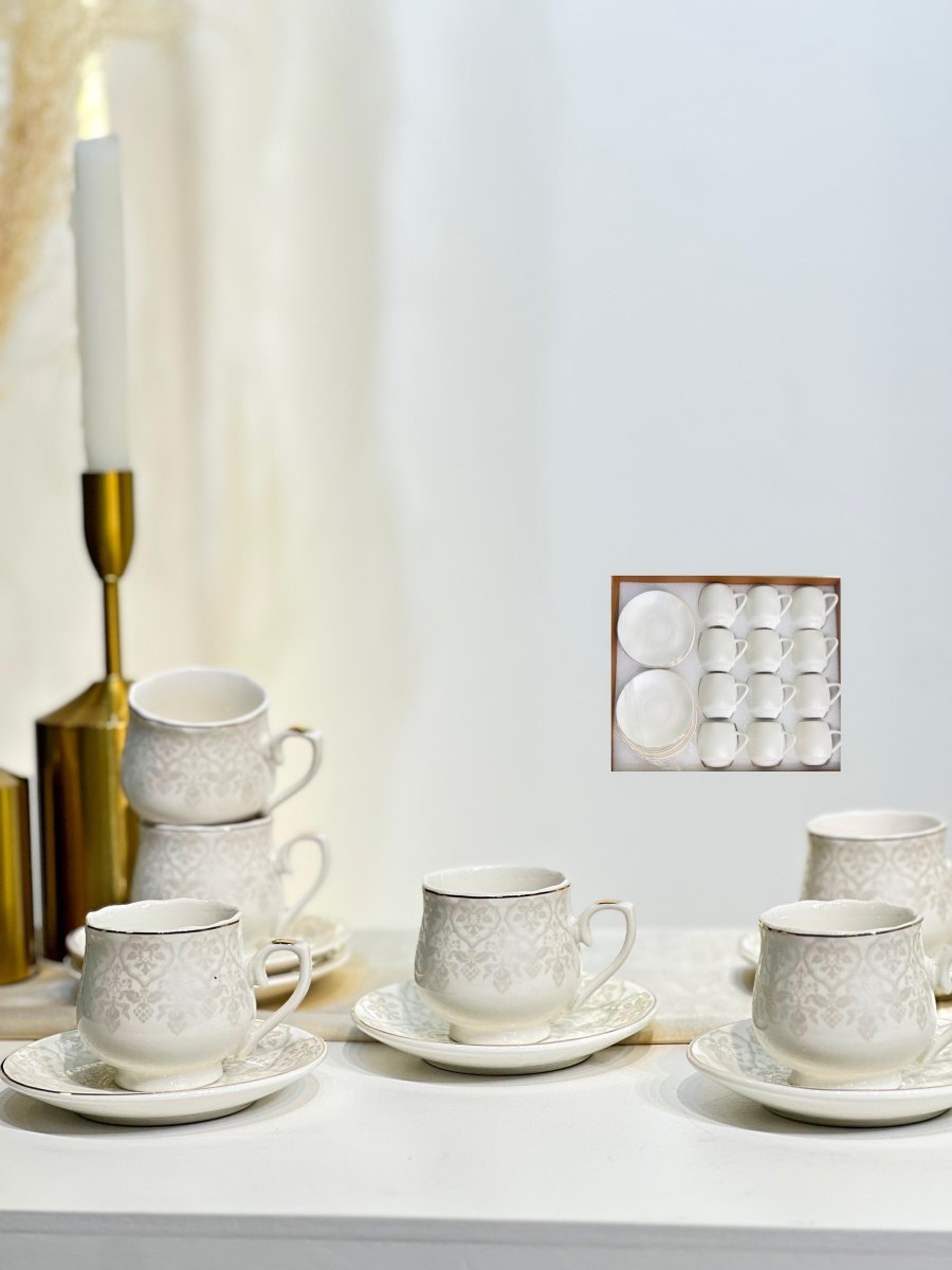 طقم فناجين قهوة 12/12 بورسلان ابيض قدرة مشرف مرسم نجمة M++ A366-1