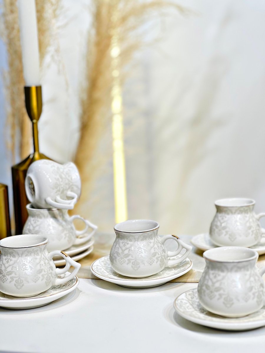 طقم فناجين قهوة 12/12 بورسلان ابيض قدرة مزخرف اسلامي M++ A365