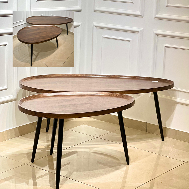طقم طاولة /2 بيضاوي 80+120سم وجه خشب ارجل اسود SM114/11+114/12 =ط3
