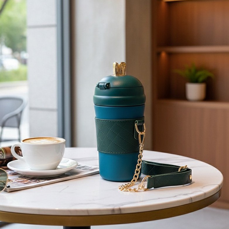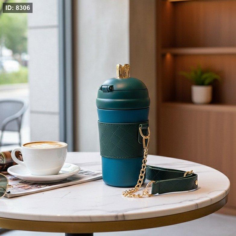كاسة سخن 400مل ستانلس ستيل اطار بلاستك ملون مع قشاطة مع مصاصة SM162/1 =ط3