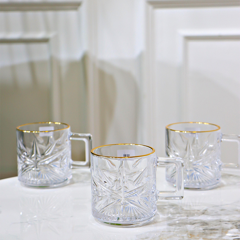 طقم كاسة شراب/6 زجاج سادة مرسم مشجر حيف ذهبي ZD85/5 =ر61