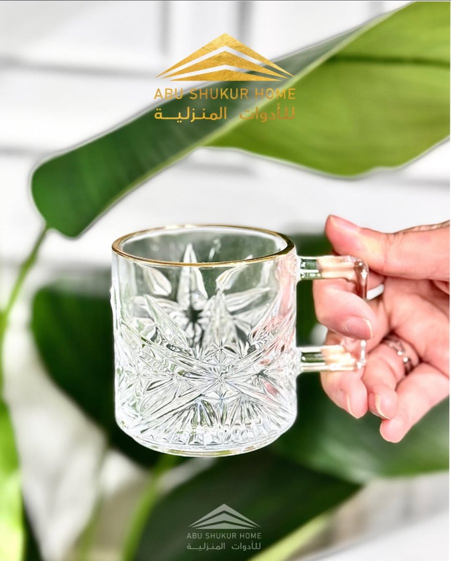 طقم كاسة شاي/6 زجاج سادة مرسم شمس حيف ذهبي ZD85/13 =ر61