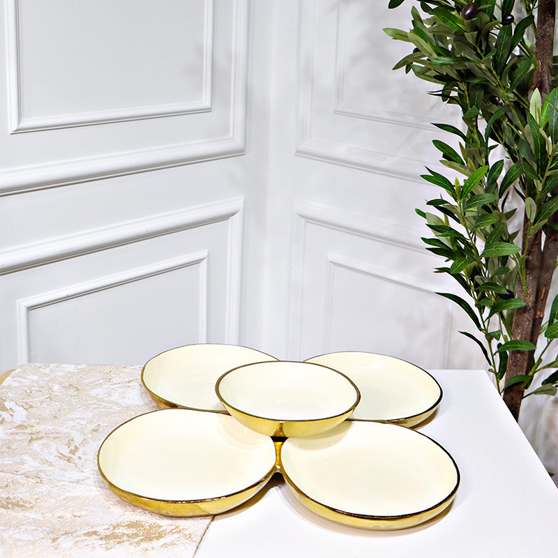 مضيفة 5 عين مدور نحاس هندي وجه بورسلان بيج شكل وردة 86044 %هـ2