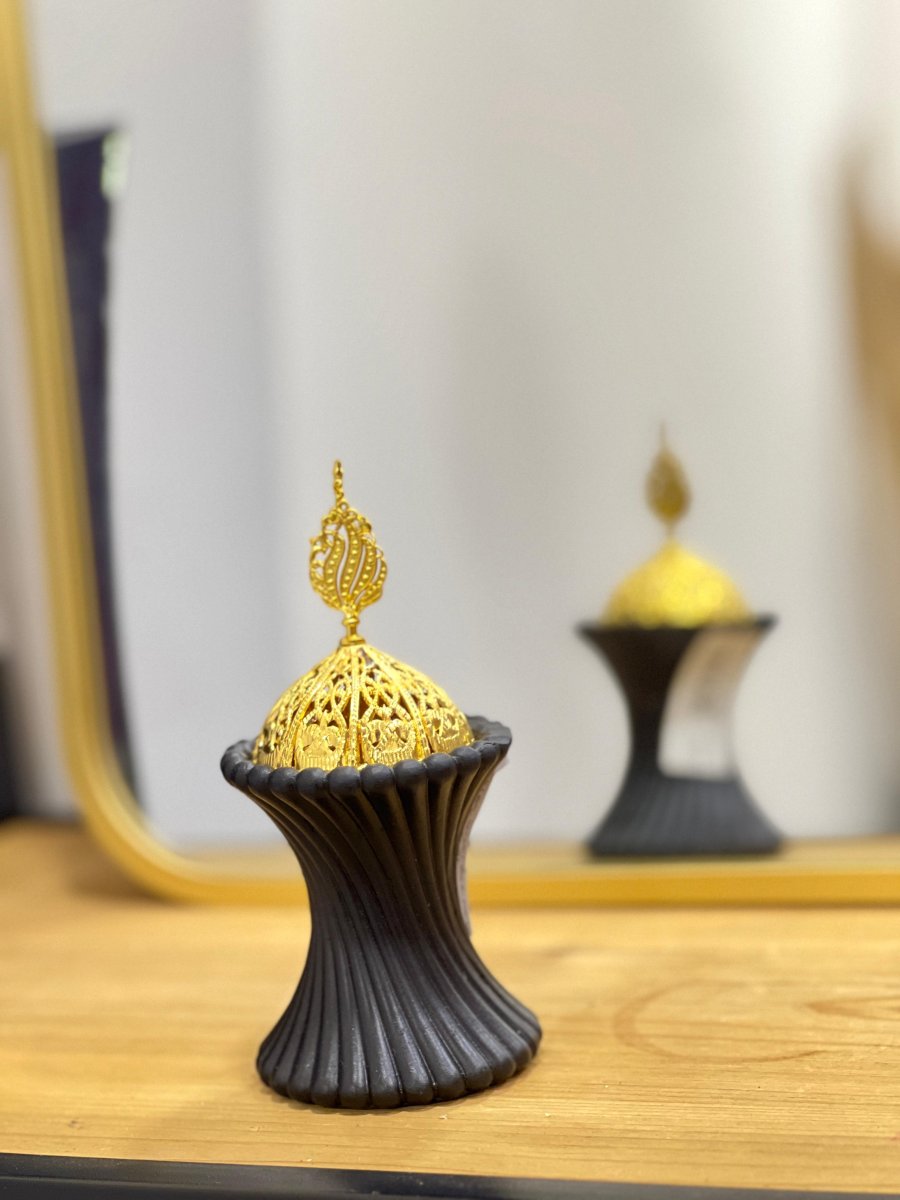 مبخرة جبص اسود محزز 8سم لف SM94/2 =ط10