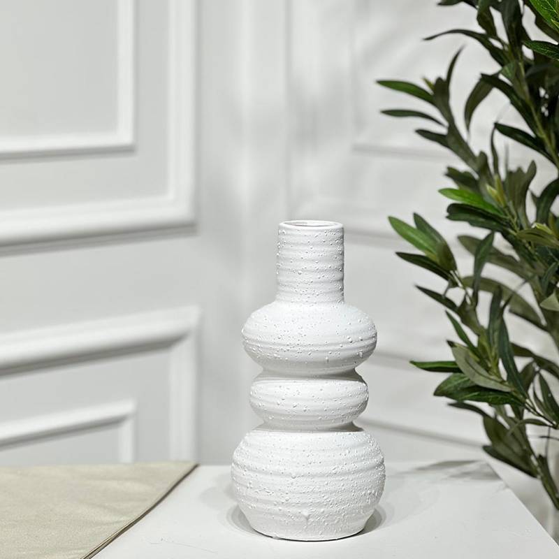 فازة جبص ابيض25سم شكل حلقات محجر SM122/8 =ط10