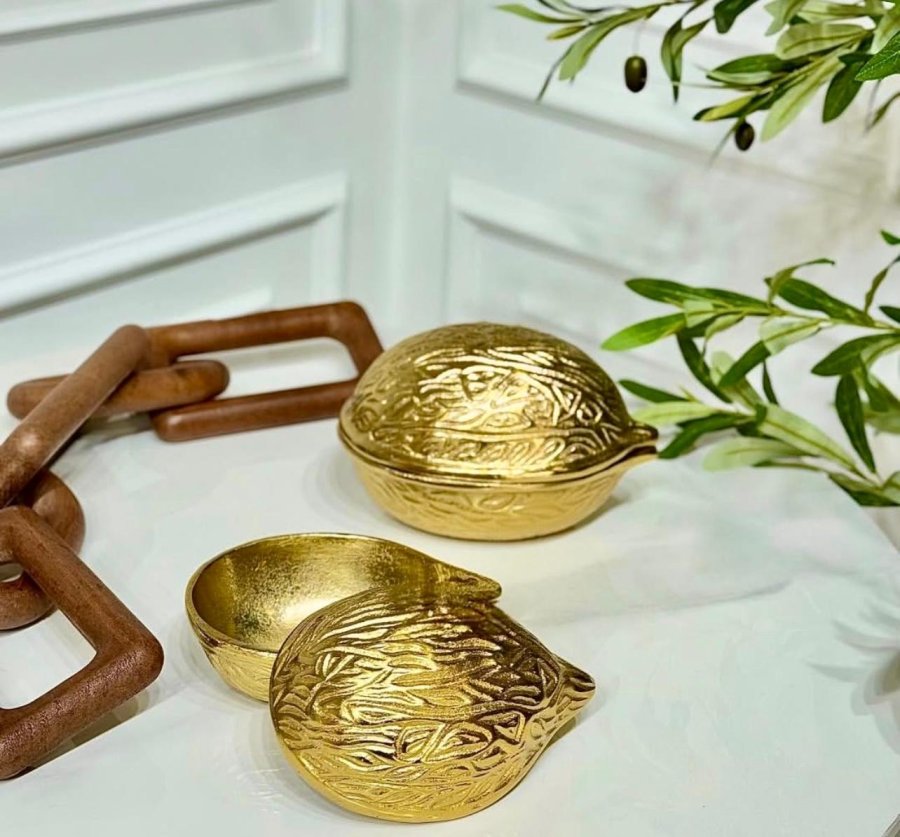 مضيفة نحاس هندي 22سم شكل جوز محزز 11861L%هـ2